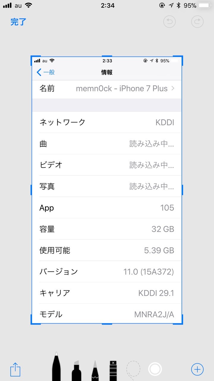 これまではスクリーンショット撮影後に保存したことがわかるくらいのアニメーションがあっただけでしたが、今回のiOS 11.0から撮影後にスクリーンショットが小窓で表示され、それをタップすると画像編集ができるようになっています。いわゆる線や図形などを描ける「マークアップ」機能が追加されました。