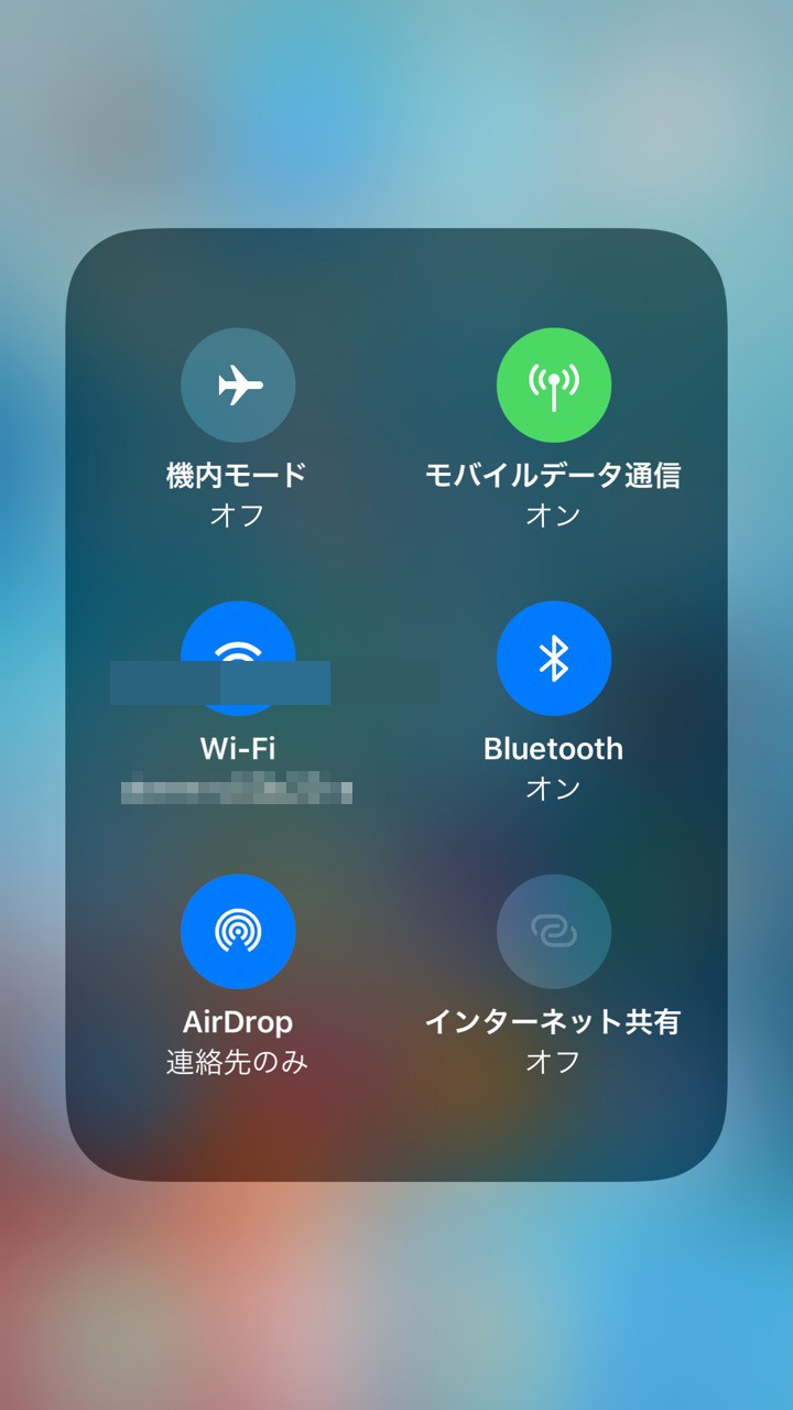 この長押しまたは3D Touchでの押し込みによるサブメニュー表示は他の項目でも対応しているものが多く、例えば、左上にある機内モードなどの4つのボタンの部分だと、さらに「AirDrop」および「インターネット共有」(いわゆる「テザリング」)のオン・オフができるようになりました。なお、iOS 11からコントロールセンターによるWi-FiとBluetoothのボタンはオン・オフではなく、オン(接続)またはオン(非接続)となっているので完全にオフにしたい場合は設定から行う必要があります。
