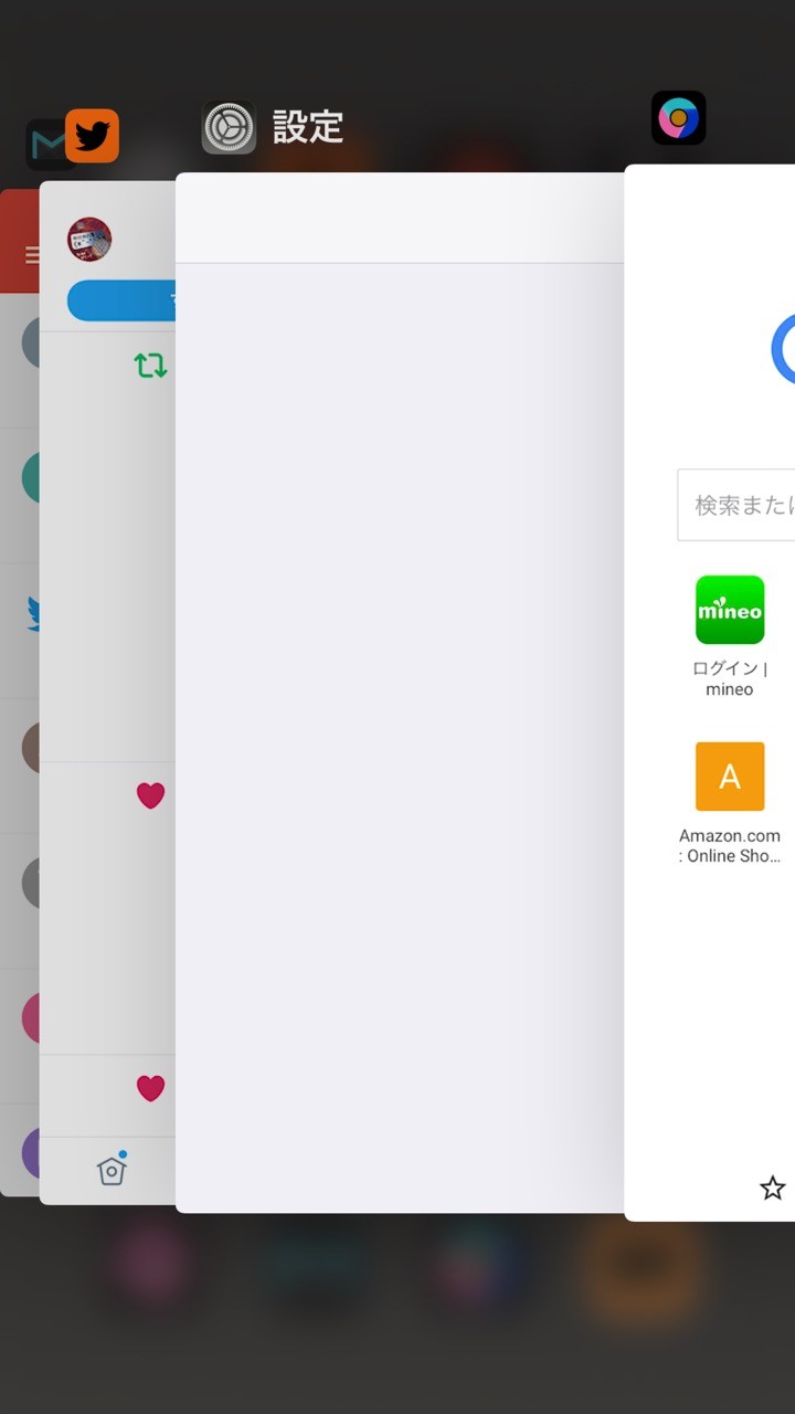 iPhoneではこのようになっており、ホームボタンを2回連続で押すとアプリ履歴が表示されて、過去に使ったアプリに素早く切り替えることができる操作体系はそのままです。