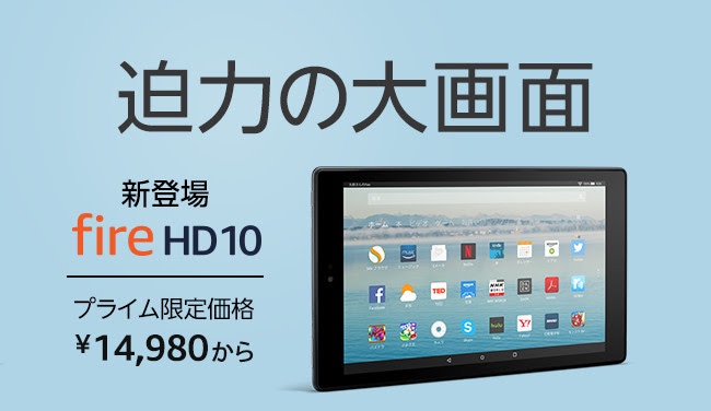 ・Amazon Newsroom - Amazon、フルHD画質や高速のパフォーマンス、長時間バッテリー等を搭載した最新型タブレット「Amazon Fire HD10」を発売