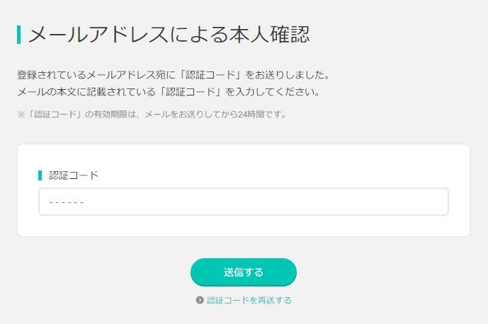 登録しているメールアドレス宛に本人確認用のコードが送信されてくるのでメモします。