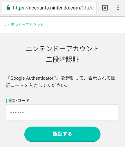 なお、事前にAndroidやiOS搭載機種にGoogle 認証システムアプリを導入しておきましょう。また最初のニンテンドーアカウントへのログインで2段階認証を有効化する作業をAndroidやiOS搭載機種で行うことも可能です。