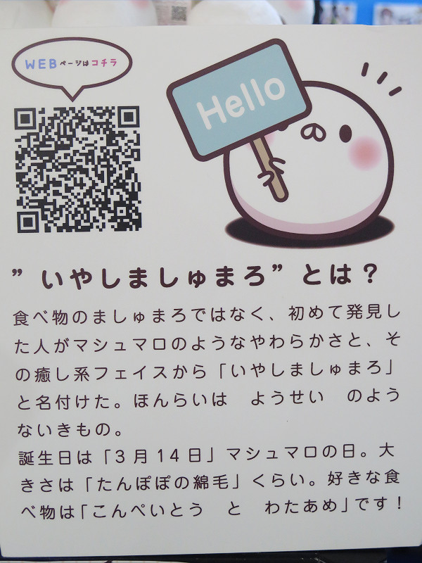 「いやしましゅまろ」はジョイントメディアが展開している「マシュマロのようなやわらかさと、その癒し系フェイス」から、この名前がついたというキャラクターです。