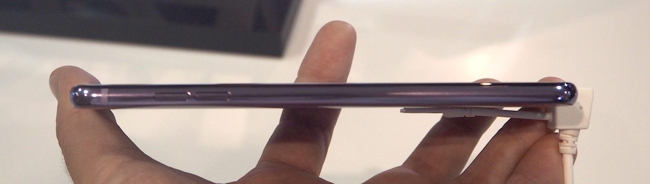 同社では6インチオーバーでは最軽量だとしている。縦長になったので実際の画面面積は従来の9:16よりも狭いために判断は難しいのだが、少なくとも5.8インチの「Galaxy S8」や「iPhone X」と比べると数値的には軽く、Galaxy S8+と持ち比べたところ軽く感じた。
