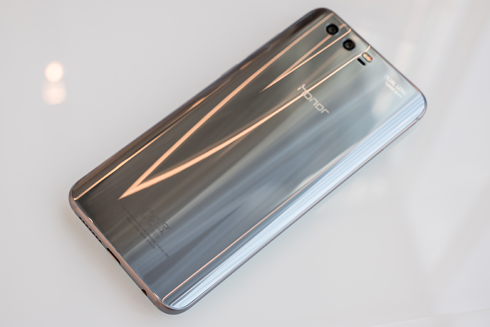 背面は前モデルであるhonor 8の要素を受け継いだガラスボディーを採用し、15層のレイヤーによる独特の光沢感を演出している。これにより、特に背面は見る角度によって複雑に光が反射する美しい質感だ。