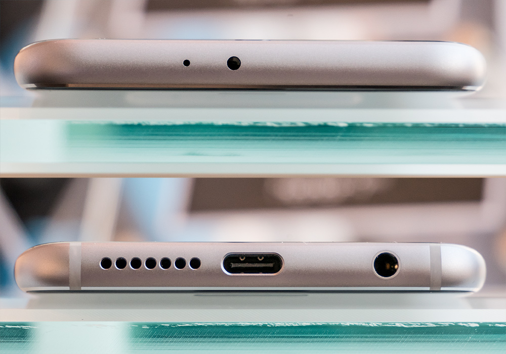 上面(写真=上)にはマイク孔、下面にはUSB Type-C端子と3.5mmイヤホンマイク端子がある。その他の仕様ではIEEE802.11a/b/g/n/ac準拠の無線LAN(Wi-Fi)やBluetooth 4.2、NFC Type A/B、Android 7.x(開発コード名:Nougat)、EMUI 5.0など。急速充電(9V・2A)にも対応。