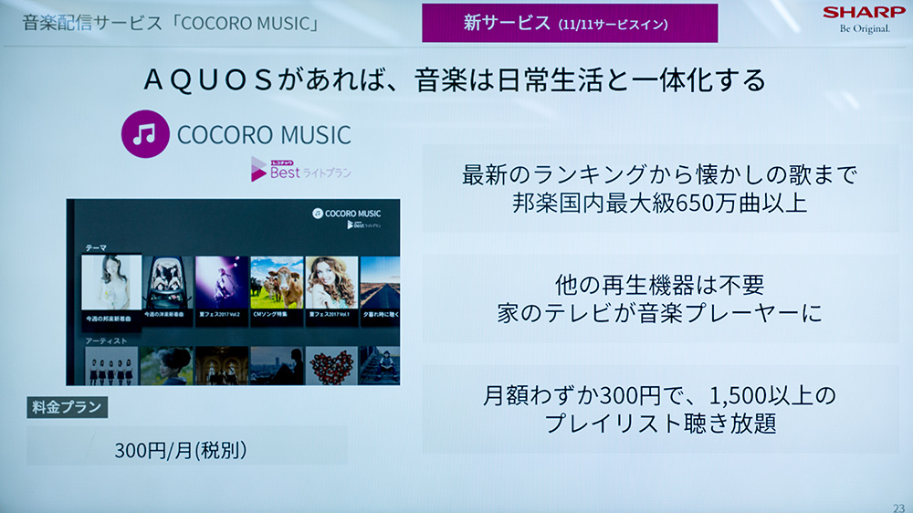 今回ラインナップされた5機種のAQUOS 4Kは、こしたビデオや音楽配信サービスを楽しむための機能にも力を入れている。