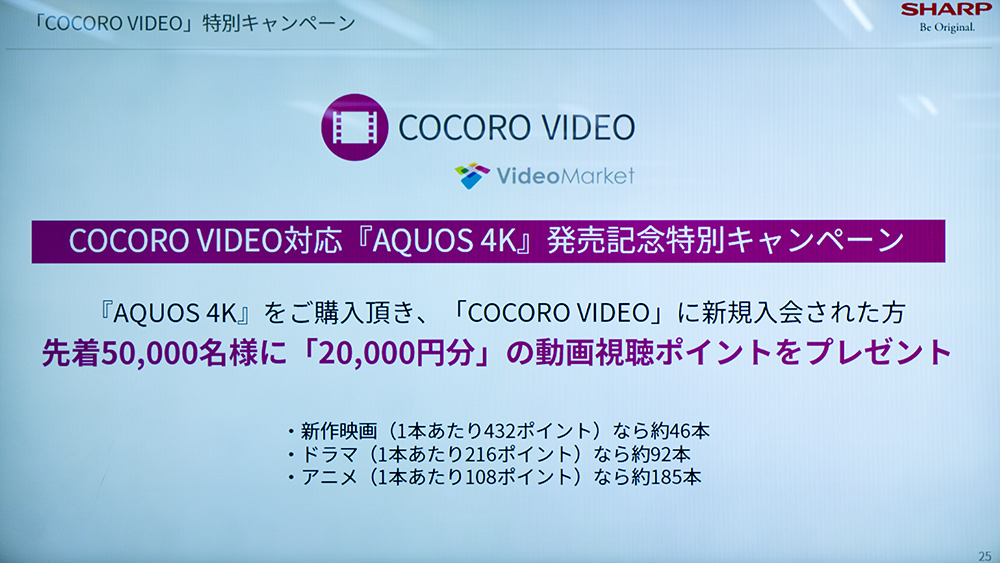 発売記念キャンペーンとしてCOCORO VIDEOに新規入会すると先着5万人に「20,000円分」の動画視聴ポイントプレゼントを実施。単品コンテンツとして提供されている映画なら約46本、ドラマなら約92本、アニメなら約185本視聴可能だ。