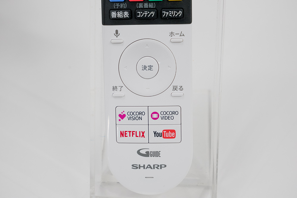 リモコンには、COCORO VISIONを呼び出すボタンのほかに、COCORO VIDEO、NETFLIX、YouTubeボタンがあり、放送波だけではなくネットコンテンツも身近に楽しむことができる。