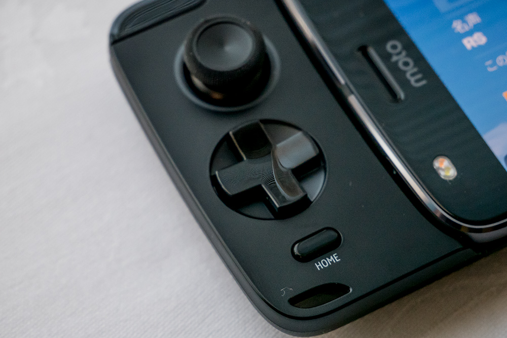 Moto ゲームパッドは2つのアナログスティックとLRボタンなどをもつ本格的なもの。接続はBluetoothではなく、Moto Modsとして本体と接続されるため面倒な接続設定を必要としない。