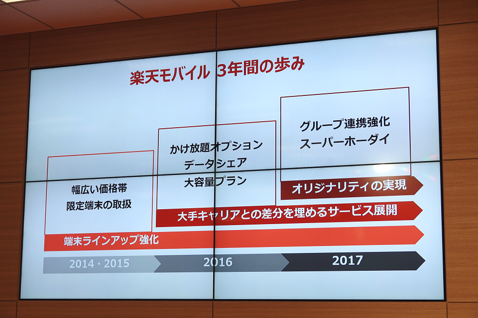 2015年にサービスを開始し、2016年を「仕込みの期間」として赤字覚悟でシェアを広げ、2017年にようやくその芽が出始めた楽天モバイル。FREETEL事業の買収や楽天グループとのシナジーという他社にない大きな武器を手に、2018年は一気に黒字化をめざすのか、それともまだまだ堅実なブランド醸成とシェア拡大に努めるのか。「いつ黒字になるのかはお答えできない。マーケティングへの投資を止めればすぐにでも黒字になるが、それでは成長できない」。大尾嘉氏の言葉に独特の凄みを感じた説明会でした。