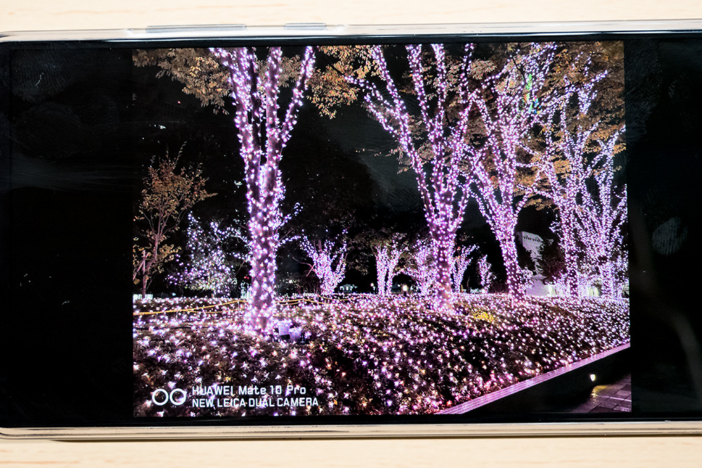 スタッフが撮影した作例を見せてもらったのだが、AIを使わずに撮影した場合は暗闇の中にイルミネーションだけが光っているように写っている。