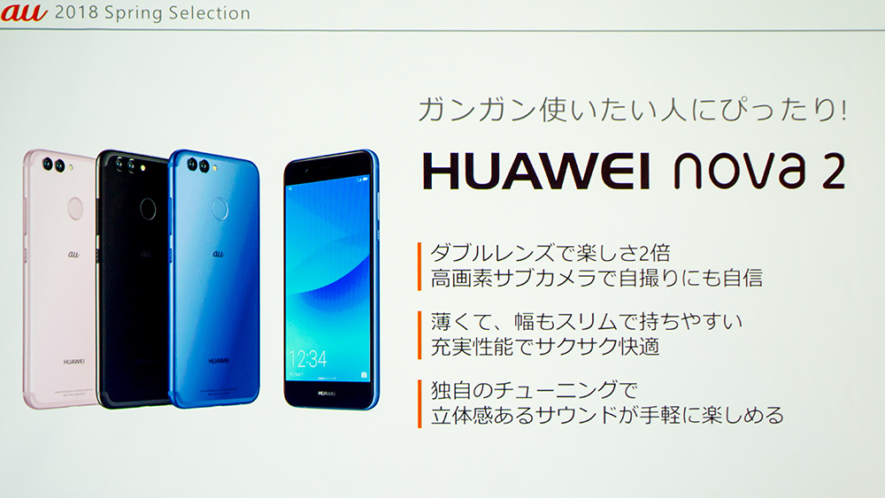 またHUAWEI nova 2はauの他にも格安SIMの「UQ mobile」も1月26日に発売すると発表しており、今年はファーウェイがSIMフリー市場だけではなく大手携帯電話会社などのキャリア向け製品としても知名度を上げる1年になりそうだ。