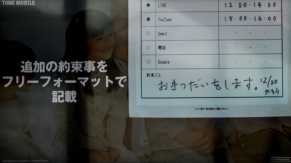 ・トーンモバイルからのクリスマスプレゼント!お子さまがスマホを約束通り“夜使わなかったら”「高速チケット」1GBプレゼント また、紙に書いた約束がそのままスマホの設定に反映される「親子の約束」をアップデート