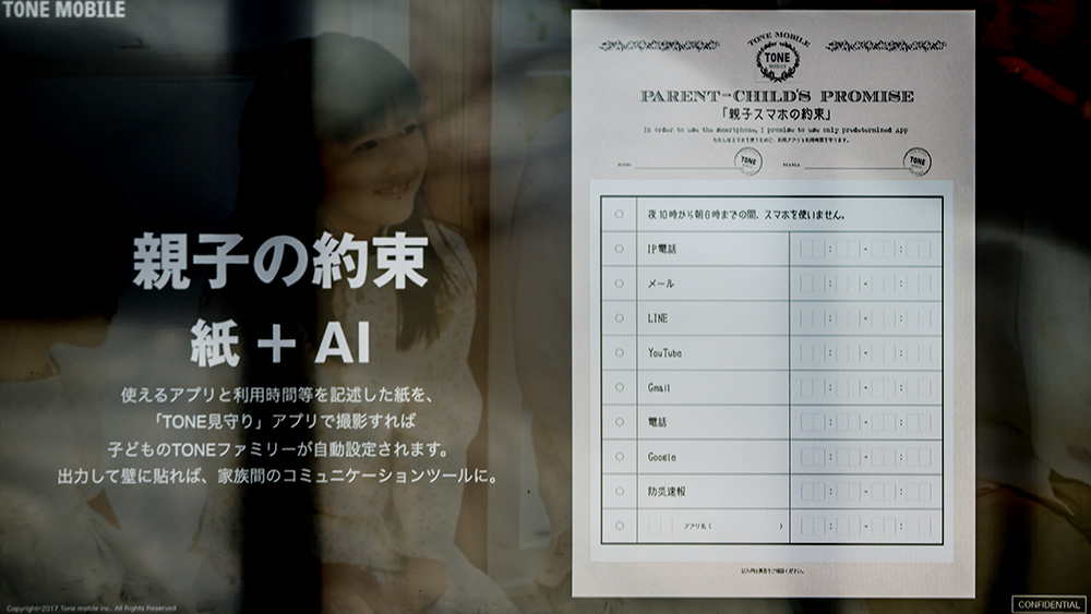 こうして作成した親子の約束を、スマホのカメラで読み込むことでAI(人工知能)による文字認識を経て、TONEファミリーとしてスマホに設定される仕組みとなっている。