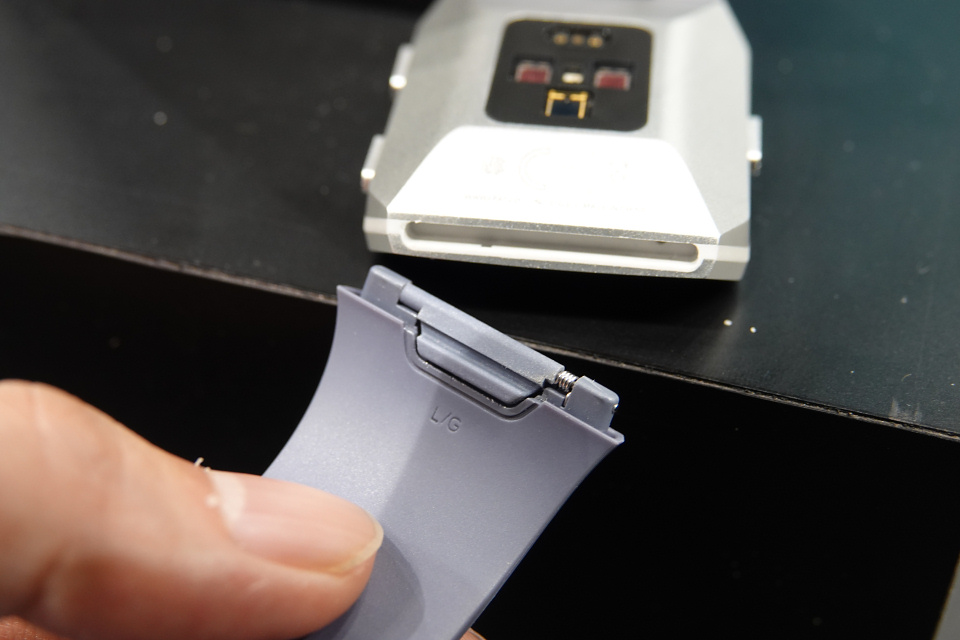 本体の材質には腐食に強く強度も十分な6000番台のアルミ合金を使用しており、本体重量も29g(バンド部含まず)と非常に軽量です。またバンド部分はボタン1つで簡単に交換が可能で、ラバー素材のクラシックタイプのほか通気性を上げたスポーツタイプやレザー素材のバンドなど、利用シーンやファッションに合わせて気軽に付け替えが可能です。