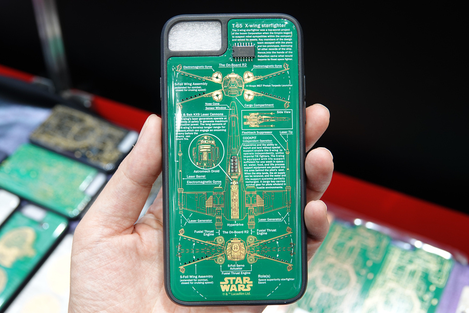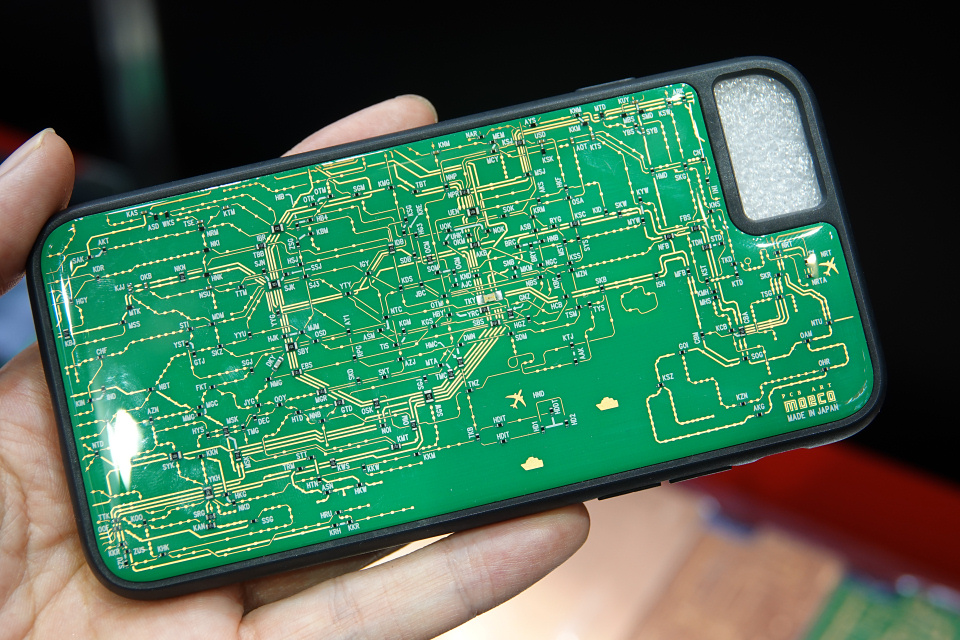今年1月17日から19日まで東京ビッグサイトでウェアラブル関連の総合展示会「第4回 ウェアラブルEXPO」が開催され、プリント基板の設計、製造、実装および検査などを手掛ける電子技販が出展し、同社のコンシューマ向け商品「moeco PCB ART」ブランドの製品として「FLASH 東京回路線図 iPhoneケース」や「FLASH 東京回路線図 IC-CARDケース」、「FLASH STAR WARSシリーズ」などが展示されていました。