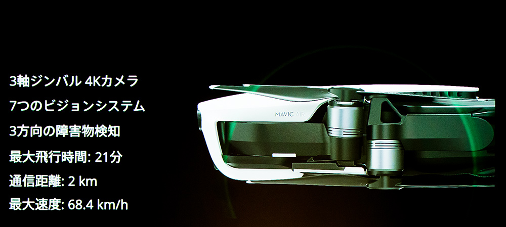 今回は発表会にて紹介された本格的な3軸ジンバルと4K撮影によって滑らかな空撮映像をだれでも楽しめるMavic Airについて写真と動画で紹介していく。
