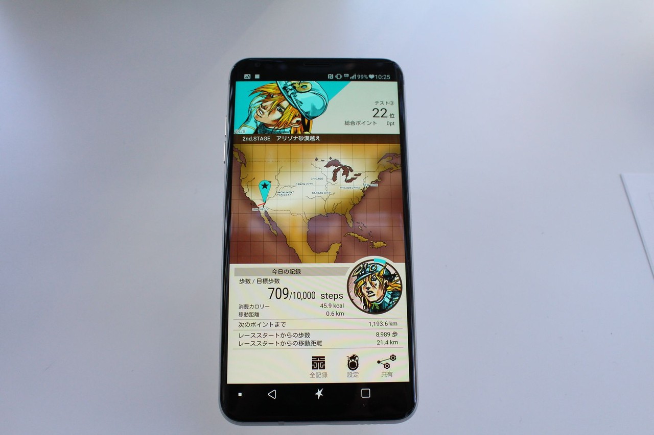 各種ウィジェットもオリジナルデザインとなっています。歩数計のウィジェットをタッチすると、ジョジョの奇妙な冒険で登場する「STEEL BALL RUNレース」を仮想体験できるアプリが立ち上がります。楽しみながら歩くことができそうです。