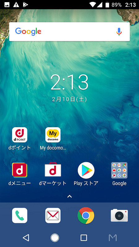 M Z-01Kの購入直後のホーム画面は全3面で、画面を下から上へスワイプするとアプリ一覧(いわゆる「ドロワー」)が呼び出せるタイプの現在Androidでは標準的な「Launcher3」と呼ばれるホームアプリが採用されています。