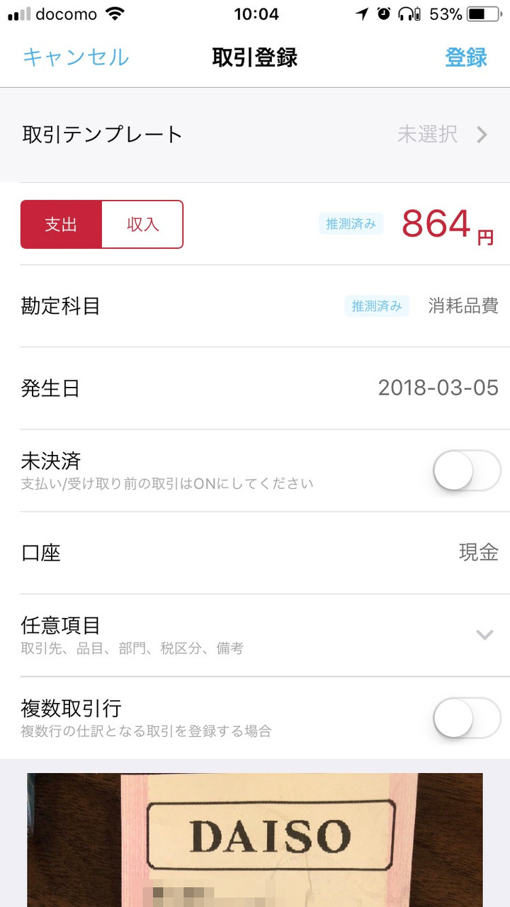 勘定科目や税区分はfreeeの推測機能によって自動的に入力されるので、変更する必要がある場合のみ変更します。
