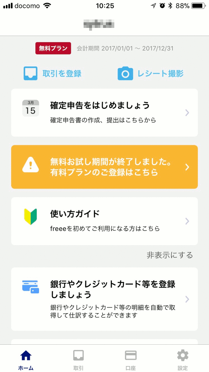 まずクラウド会計サービスには「MFクラウド」や「弥生オンライン」などいろいろとありますが、今回は「freee」というサービスを使ってみました。特別な理由はなく、利用者のレビューを見る限り今のところ一番モバイルアプリが充実していそうだったのがfreeeだったからというだけのことです。それぞれのサービスで良いところ・悪いところが当然あるでしょうし、また、ユーザーの会計知識レベルによっても評価がかなり分かれるようなので、お試し期間などを活用して十分検討すると良いと思います。