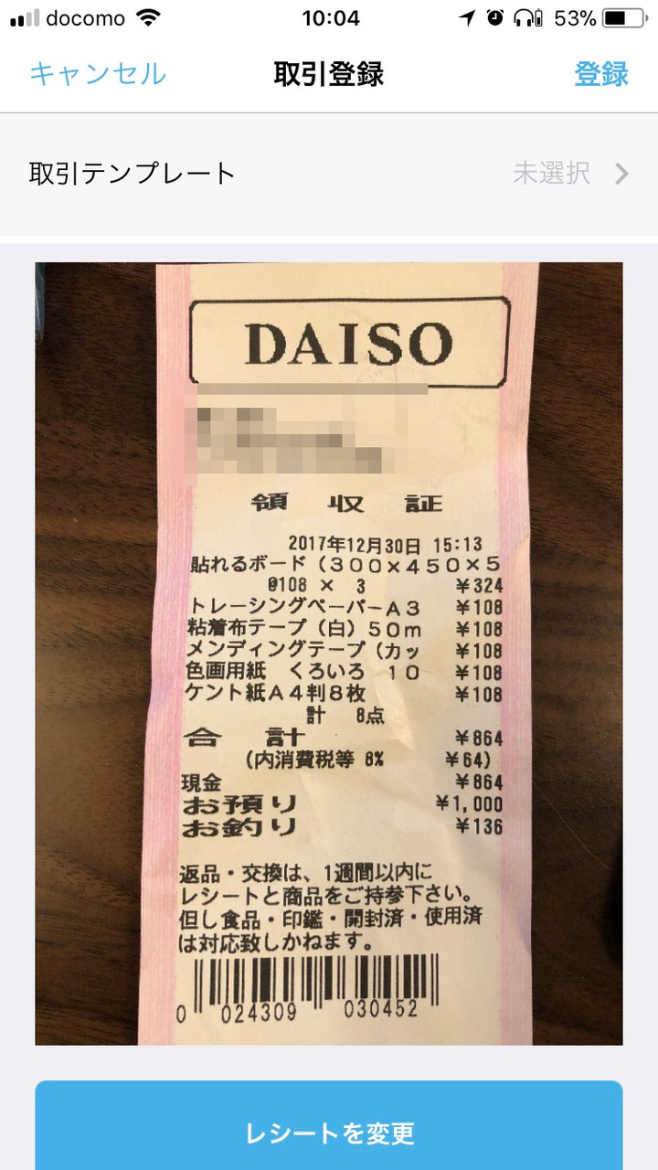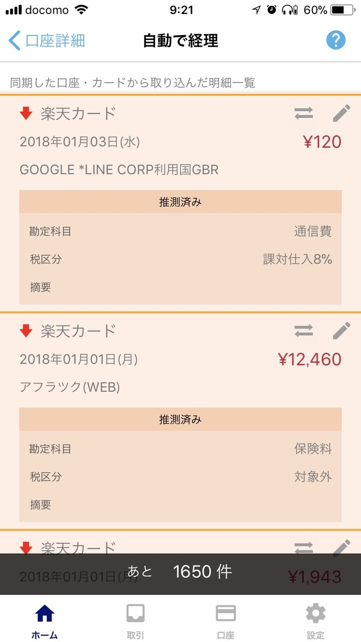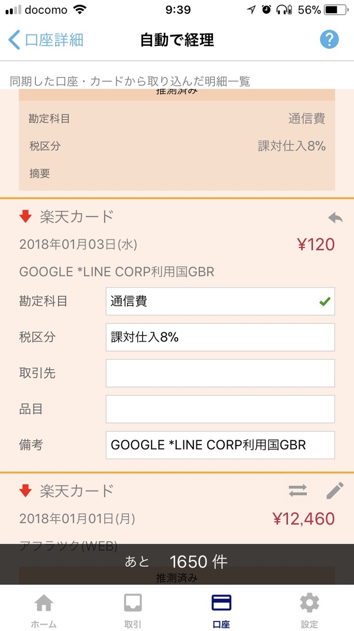 変更すると同じ内容が自動的に以降の取引に適用されます。この学習機能は優秀で、かなり楽ができます。