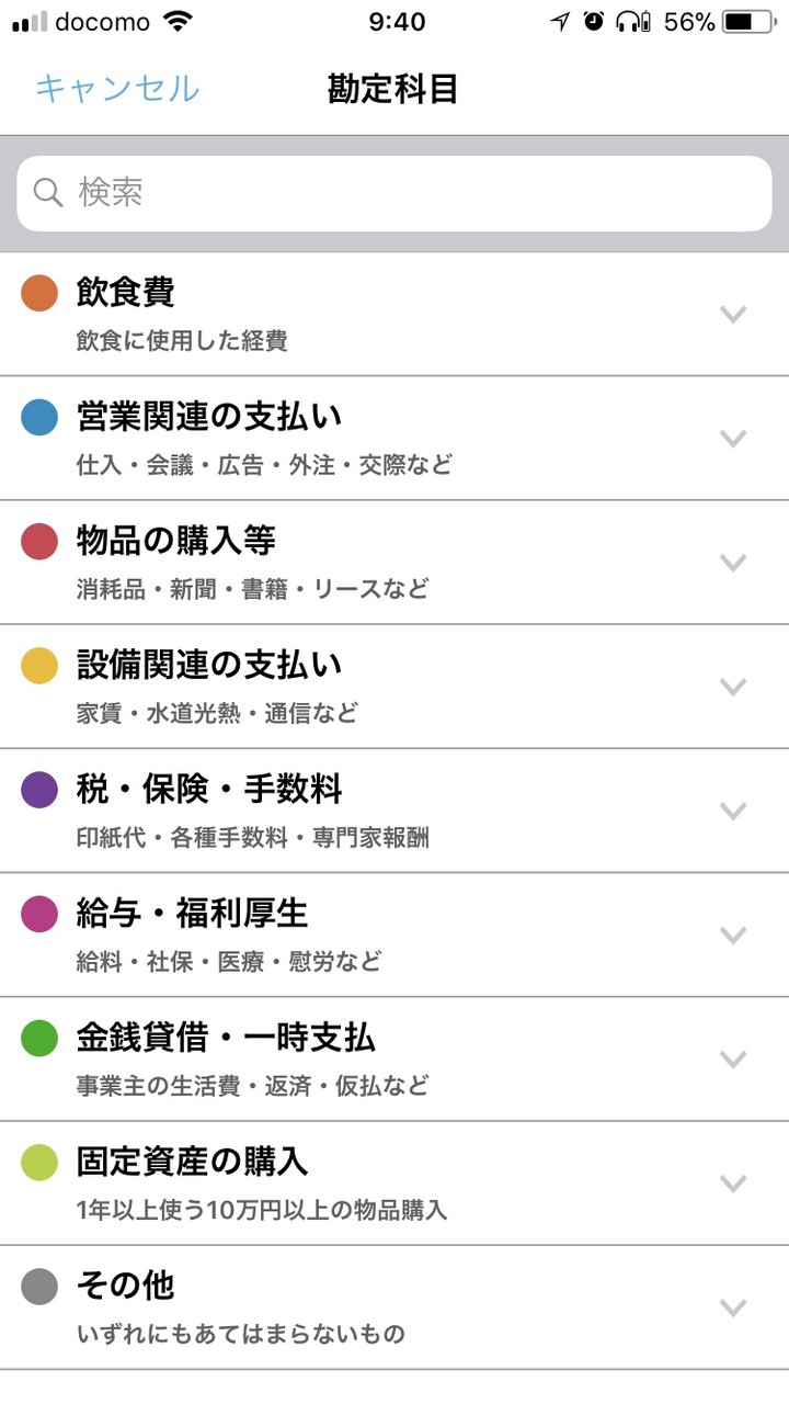 また、勘定科目の選択は会計の知識がないと毎回悩みのタネになりますが、この点も選択時に各科目の説明や例が表示されるので分かりやすいです。