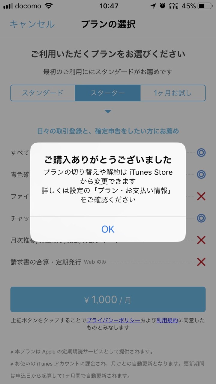 申告書の作成は無料プランのままでは行えないようになっていました。このタイミングで有料プランを契約しました。