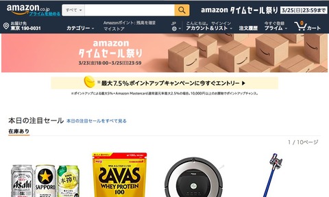 アマゾン ジャパンは23日、同社が運営するWebストア「Amazon.co.jp」において多くの商品を割り引く「Amazonタイムセール祭り」を2018年3月23日(金)18時から3月25日(日)23時59分まで開催しています。タイムセール対象商品はAmazonプライム会員以外にも購入できますが、プライム会員だと先行して対象商品が確認できたりします。