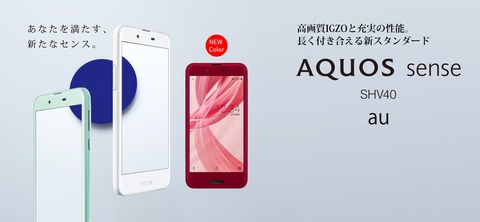 KDDIおよび沖縄セルラー電話は14日、都内にて『「au 2018 夏モデル」に関する説明会』を開催し、アスペクト比9:16の約5.0インチフルHD(1080×1920ドット)IGZO液晶を搭載したAndroid採用スタンダードスマートフォン(スマホ)「AQUOS sense(型番:SHV40)」(シャープ製)に新色「ノーブルレッド」を追加すると発表しています。