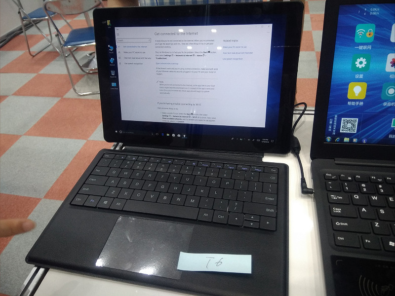 ここから先は、会場内のChina Pavilionのエリアに展示されていた端末をまとめて紹介していきます。・hyLink製 2in1 Windowsタブレット「Ultra Slim Tablet PC T6 」