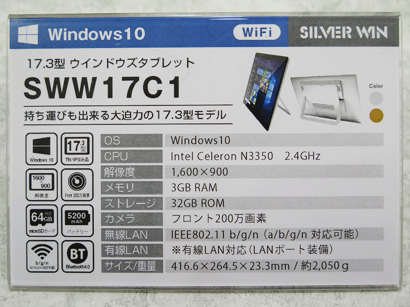 続いて紹介するのは、主に各メーカーへのOEMでタブレットを生産・供給しているシルバーウィンのブースに展示されていた約17.3インチという大きなディスプレイが特徴のWindowsタブレット「SWW17C1」です。
