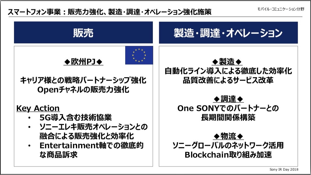 Sony IR Day 2018でMC分野の説明を行なった石塚氏も「狭額縁や大画面化、複眼カメラなどを他社が次々と取り入れたが、それらに対抗できる商品を出せなかった。」とし、「設計・商品化のスピードが劣後していることを認識している。」としつつ、今後は「そういった点を改善することが必要だ。」としました。