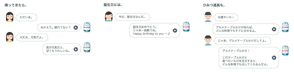 会話の中には51種類の「ひみつ道具」の単語が隠れていたり、原作のドラえもんのセリフが用いられていたりと、よりドラえもんと会話をしている体験が得られる工夫が施されている。