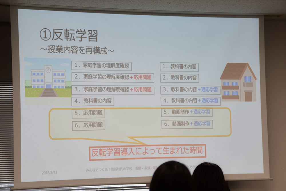 こちらも反転学習の導入により、授業が「初めて内容を教える場」から「家庭学習の理解度を確認する場」へと変化。授業時間を家庭学習でつまづきが多く見られた箇所のフォローに充てられるようになり、児童の理解度を高めつつ、授業の効率化も実現できたとしています。