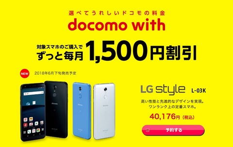 | docomo withスマホ「LG style L-03K」が予約開始!価格は4万176円 |