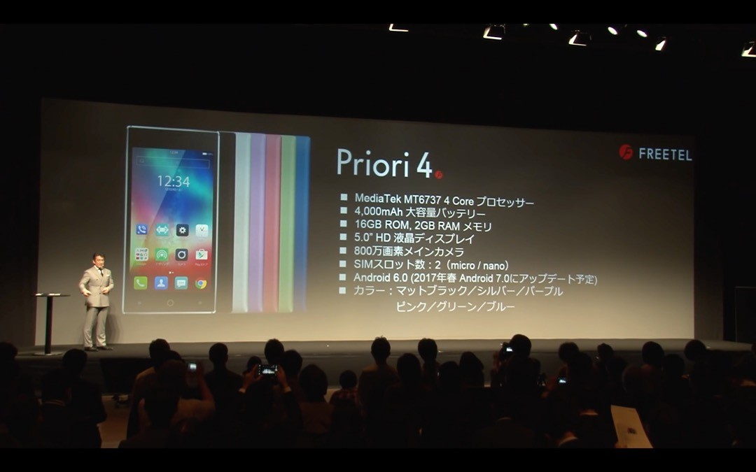 Priori 4はFREETELの低価格なエントリークラスの「Priori」シリーズの第4段で、約5.0インチHD(720×1280ドット)IPS液晶や2GB内蔵メモリー(RAM)、大容量4000mAhバッテリー(取外不可)などを搭載したSIMフリースマホです。