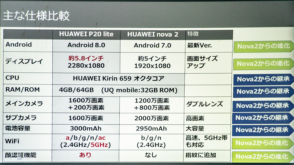 | 機種 | P20 lite | nova 2 | nova lite 2 | Mate 10 lite |