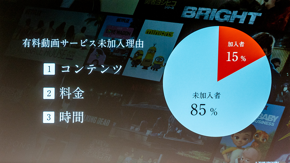 現在、auでは有料動画サービスの加入者は15%であり、85%の未加入者に対してなんらかのアプローチをしていくという課題がある。また、それだけの伸びしろがあることも価値として見い出しているのであろう。