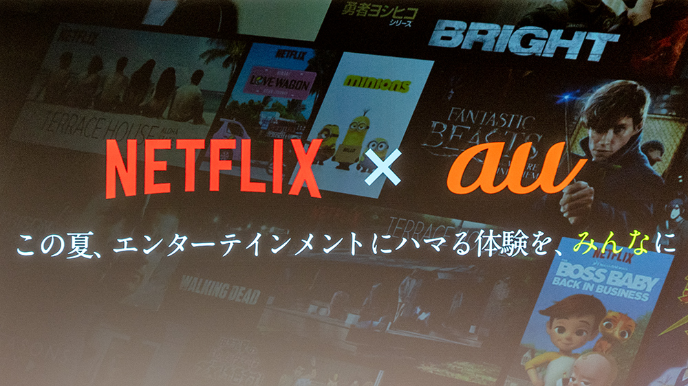 既報通り、KDDIおよび沖縄セルラー電話が都内にて「au発表会 2018 Summer」を5月29日に開催し、Netflixベーシックおよびauのビデオパスと25GBのデータ通信をセットにした料金プラン「au フラットプラン 25 Netflix パック」や「みんなつくろう」キャンペーンなどを発表した。