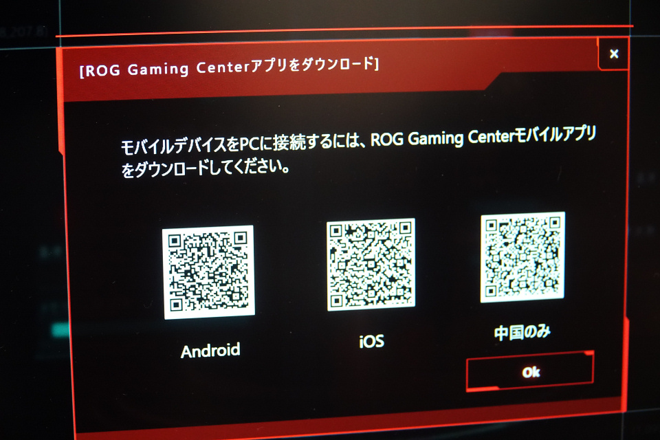 連携できるのはAndroid端末およびiOS端末で、接続にはWi-FiとBluetoothの2つが利用できます。GAMING CENTER内に各OS用のモバイルアプリをダウンロードするQRコードも表示できるため、簡単にインストールできます。