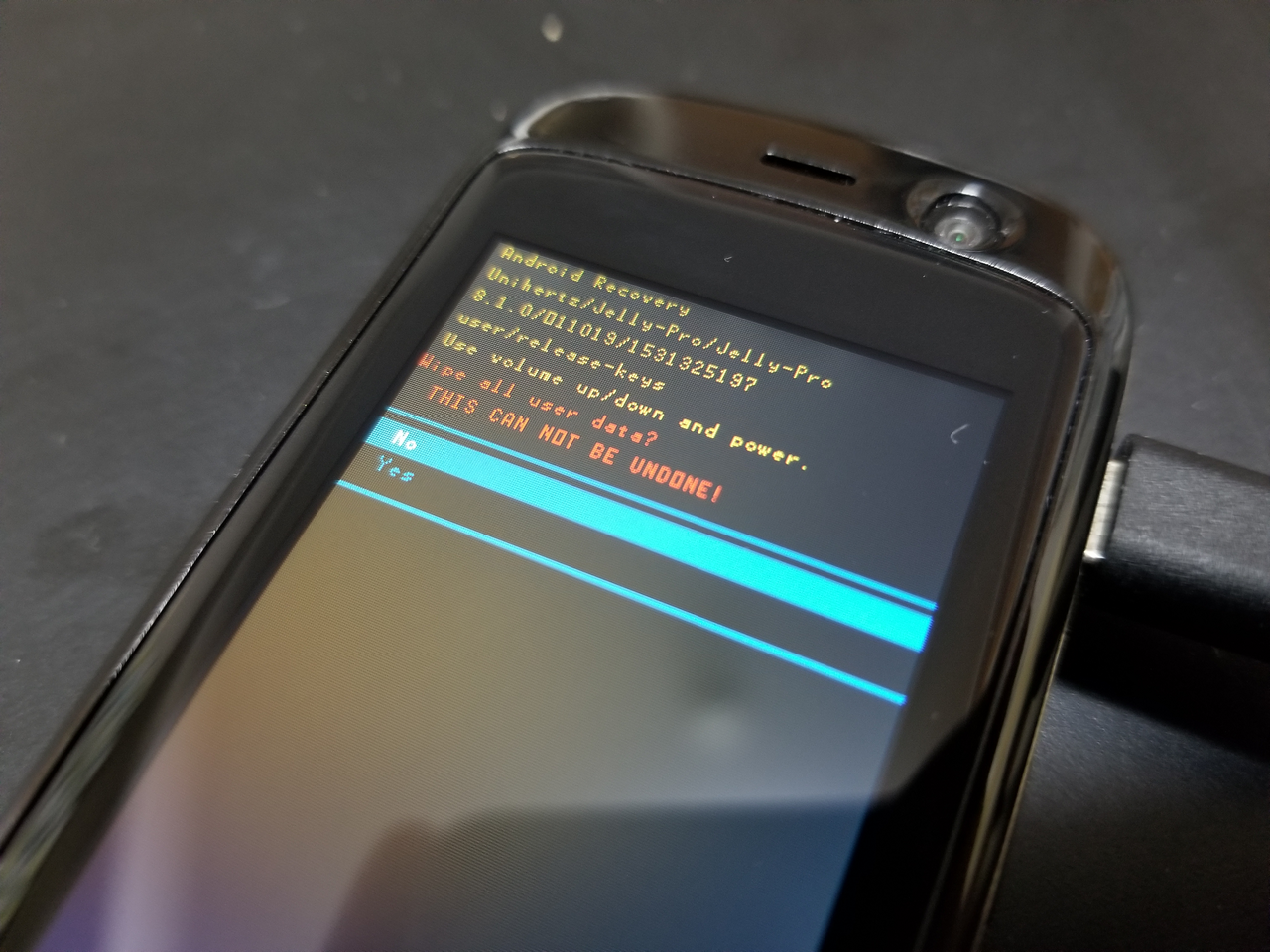 Jelly ProをAndroid 8.1 OreoにOSバージョンアップする際の注意点などは公式にもいくつか記載されていますが、その他にも更新後にファクトリーリセット(初期化)をするよう案内が出るようになっています。案内が出たら実際にファクトリーリセットをしなければ起動することができないため、更新前にデータやアプリなどはSDカードなどにバックアップを取ってから実施するようにしてください。