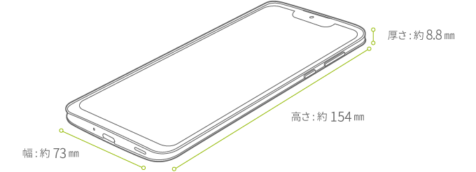| 寸法(高さ×幅×厚さ) | 約154×73×8.8mm(暫定値) |