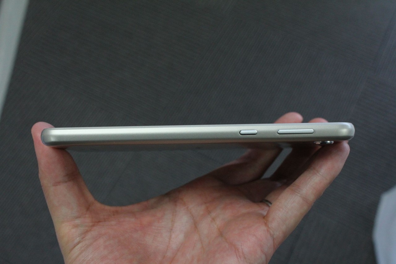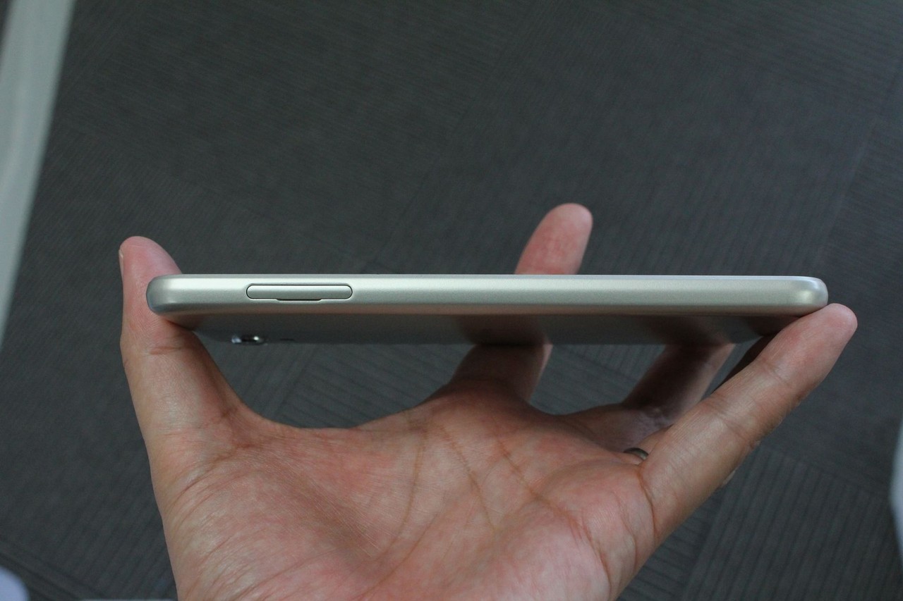 左側面はSIMカード・microSDカードスロット(最大micro SDXC 512GB)、右側面は上部にボリュームキー、その下に電源キーがあります。AQUOS senseでは握りやすくするために両側面が少し尖っていましたが、やや丸みを帯びた形に変更となり、よりしっかり握れるようになっています。