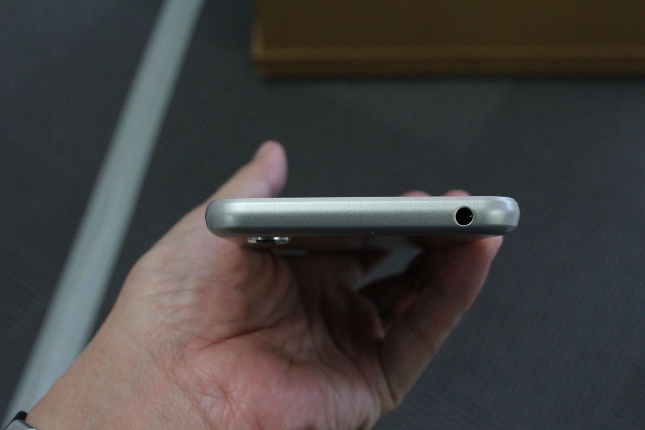 前面上部に各種センサーと約800万画素センサー+F2.2レンズのフロントカメラ、下部には指紋認証センサー兼ホームキーがあります。