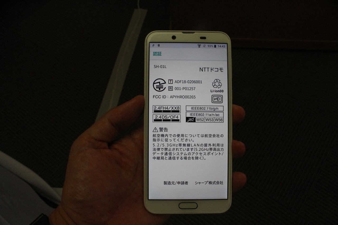 | 機種名 | AQUOS sense2 SH-01L |