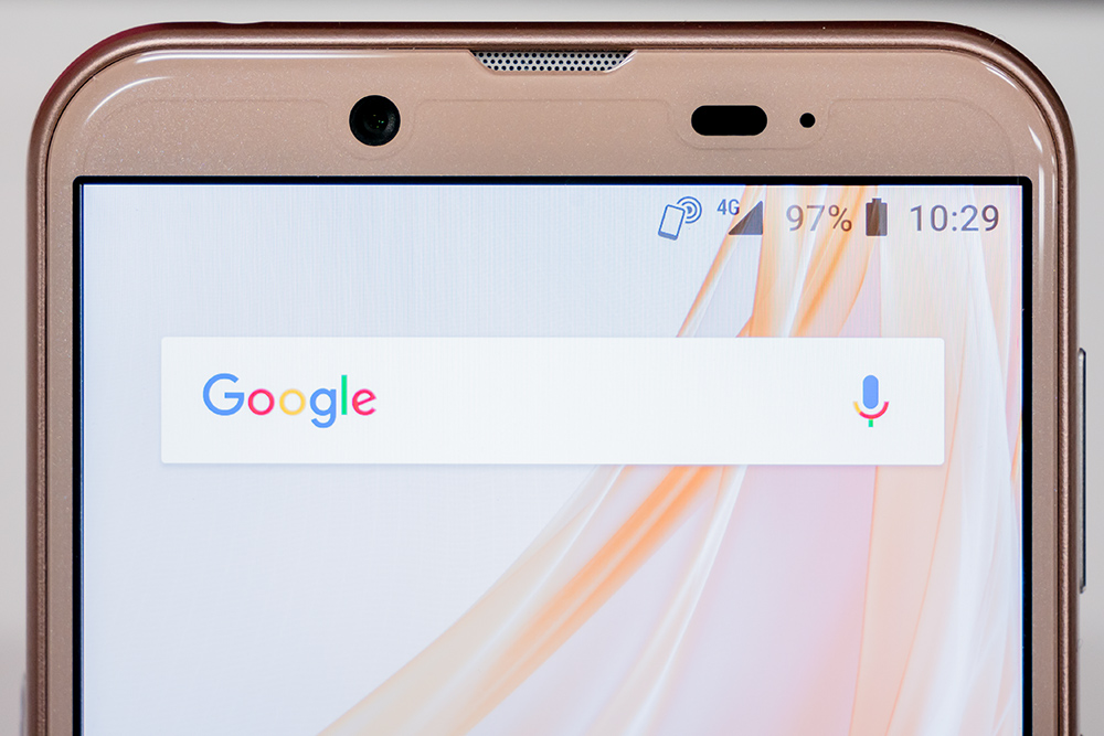 AQUOS sense2の画面は約5.5インチFHD+(1080×2160ドット)IGZO液晶だ。前機種「AQUOS sense」から縦長画面になったことでより表示領域を拡大し、色再現もフラグシップモデルと同等の「リッチカラーテクノロジーモバイル」によって写真も動画も鮮明に表示可能となった。あると便利なのぞき見防止機能「ベールビュー」も搭載している。
