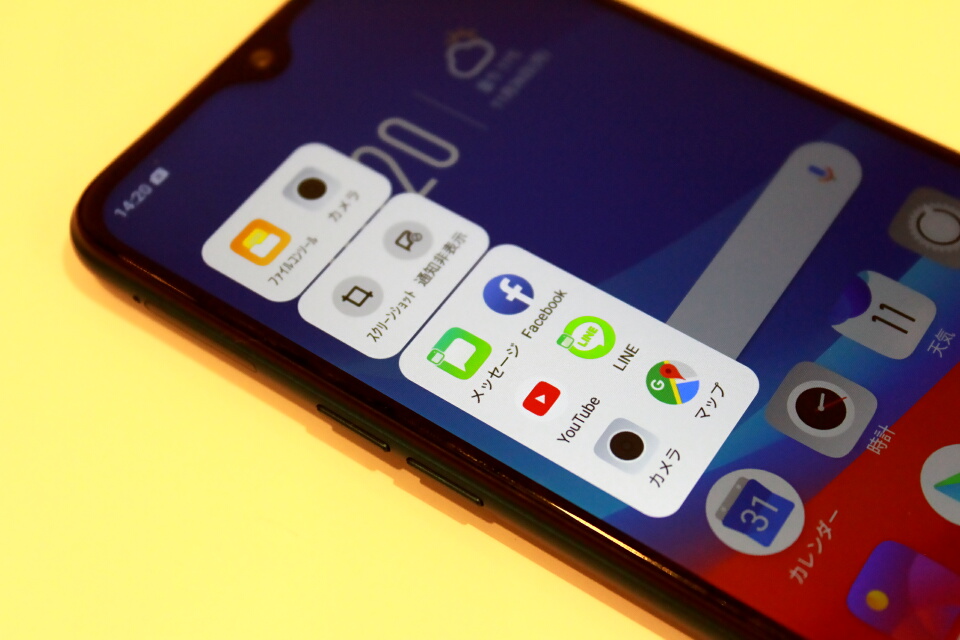 最新のColorOS 5.2の特徴とも言える「スマートサイドバー」は、アプリを起動中に、ほかのアプリをマルチウィンドウ(ポップアップ画面)で利用できるというもの。バックグラウンドのアプリは起動させたまま、サッとLINEのメッセージを返せるなどといった使い方ができる。