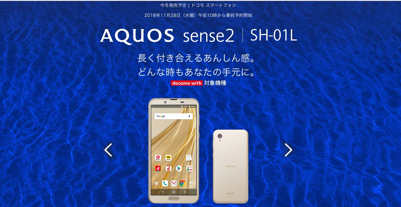 | docomo with対象の高コスパスマホ「AQUOS sense2 SH-01L」が11月28日予約スタート! |